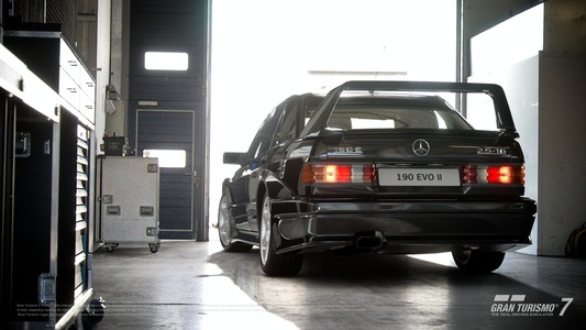 在二十世纪八十年代早期,Mercedes-Benz决定在长期缺席之后重返赛车运动领域。为此,他们基于紧凑型190系列开发了一款跑车型号,也就是于1983年正式发布的190 E 2.3 - 16。2.3 - 16的亮点就是专为它配备的引擎。这款全新引擎基于Mercedes已经量产的2.3升顶置单凸轮轴直列四缸引擎所开发。这款引擎添加了16阀门双凸轮轴,并交由以调校F1引擎而闻名的Cosworth公司调校,其动力总成可以达到185 PS的最大输出和23.1 kgfm的最大扭矩。搭载着这部引擎,190 E 2.3 - 16从1986年起开始参加德国房车大师赛。这款车在1988年和1989年进行两次升级换代。并在1990年推出了终极车型:190 E 2.5 - 16 Evolution II。限量生产的Evolution II总共只制造了500辆,却在1992年如暴风骤雨一般席卷了DTM的赛场。它以优异的表现证明自己不愧终极之名,是在房车赛中千锤百炼铸造出的传奇。