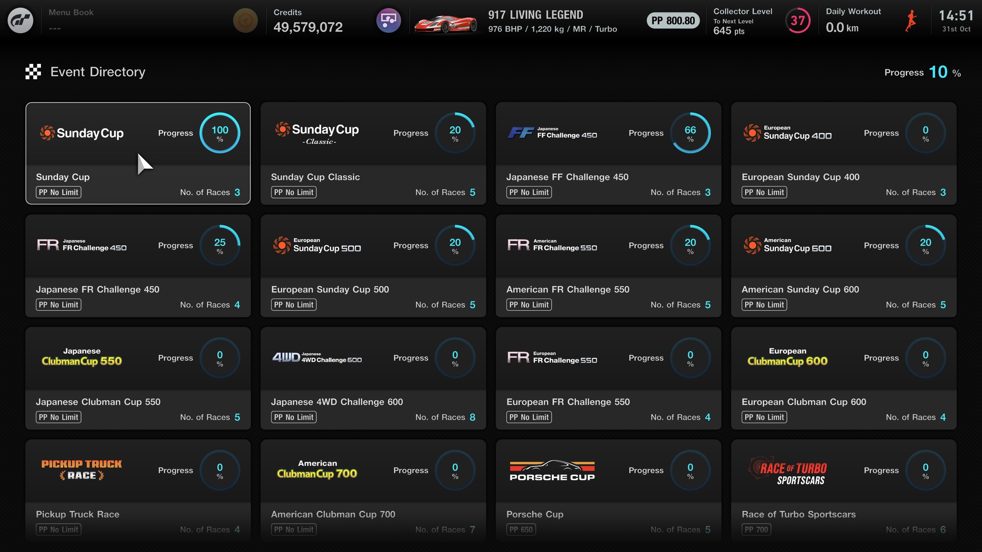 主界面右上角加入了全新的“赛事目录”按钮,以便玩家们在世界赛道中能够更快、更容易地找到所有当前开放的比赛。点击这个新按钮,玩家们就可以一键打开比赛列表,里面包含根据其当前游戏进度所能参加的所有比赛。从目录中选择一项比赛就可以直接进入。
