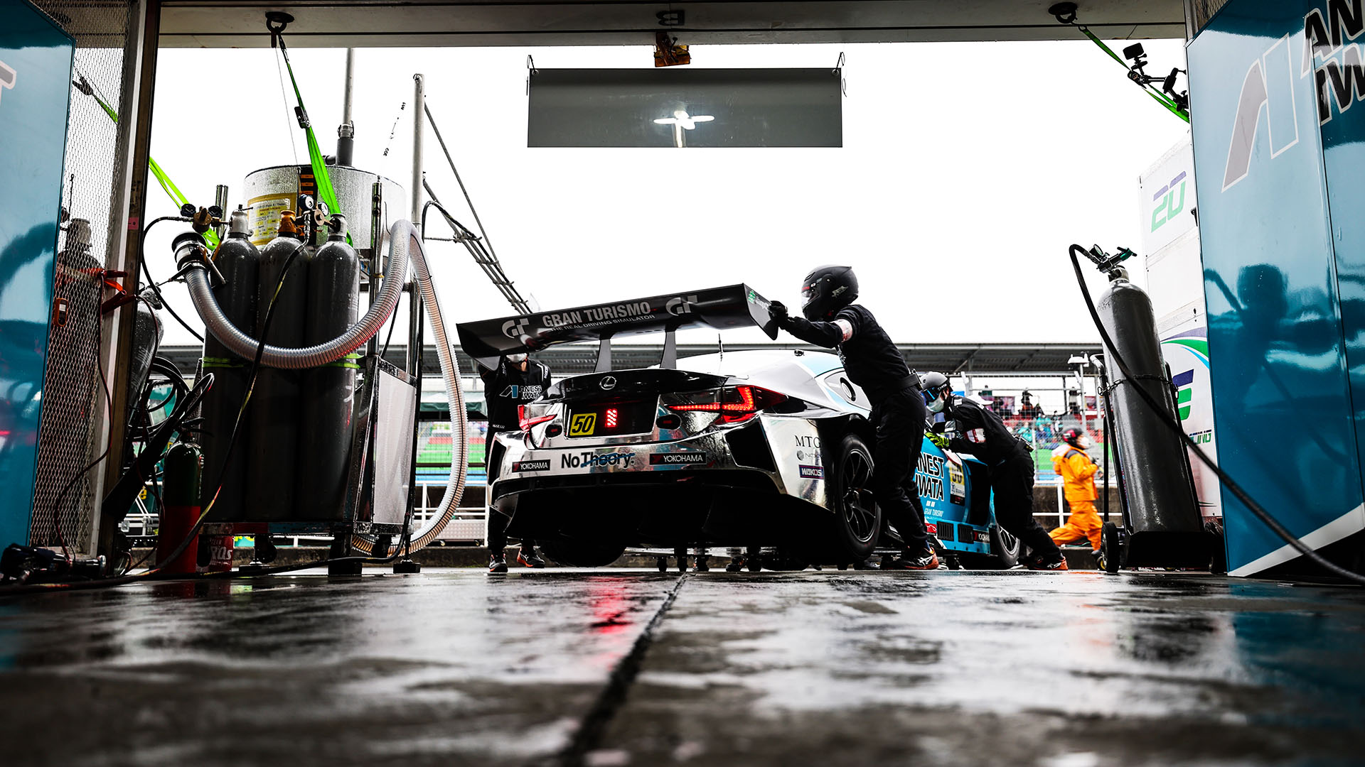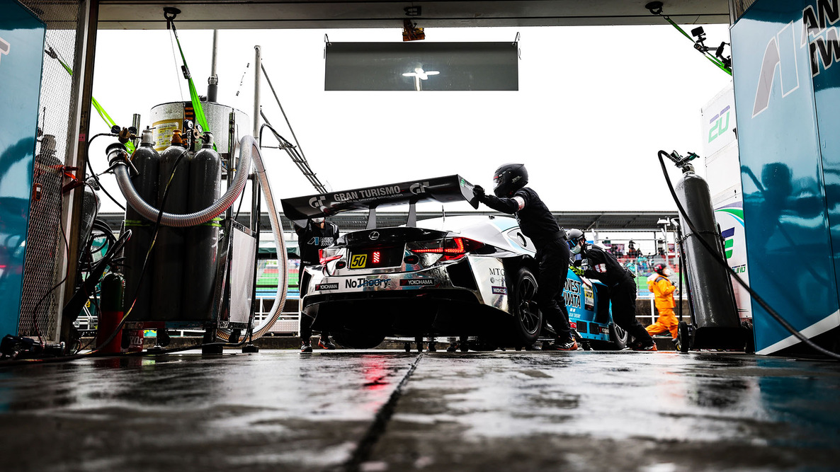 不过来到周日的决赛,天气情况却不断恶化。在Super GT比赛中,两名车手会轮流驾驶同一辆赛车,分别完成比赛的前半段和后半段。在本场比赛中,古谷是1号车手,不过比赛一发车,赛道上就开始下雨,路面积水状况也开始急速恶化。由于赛道上出现事故,比赛中亮出了全场黄旗(FCY),并出动了安全车(SC),比赛局势发生了巨大的变化。