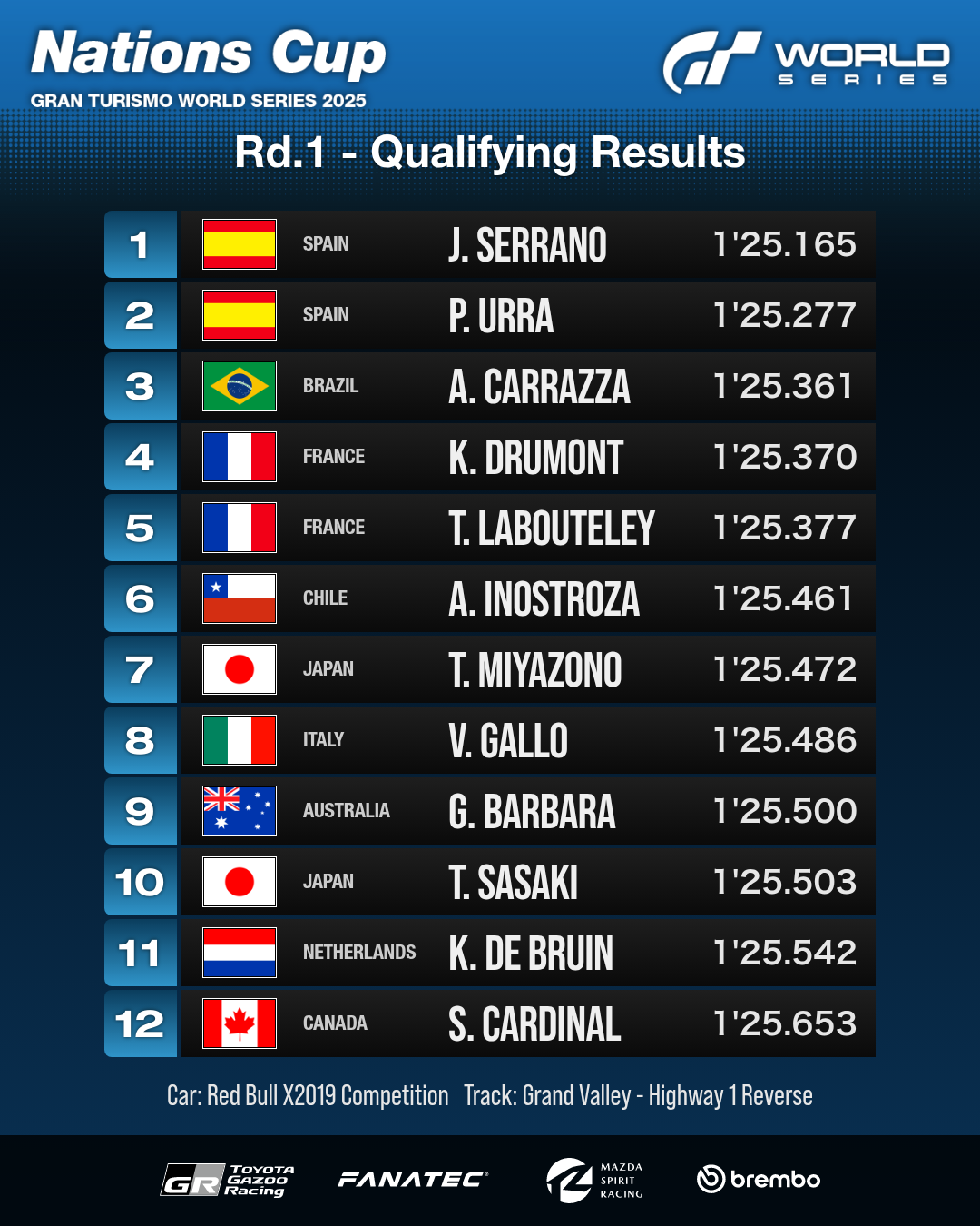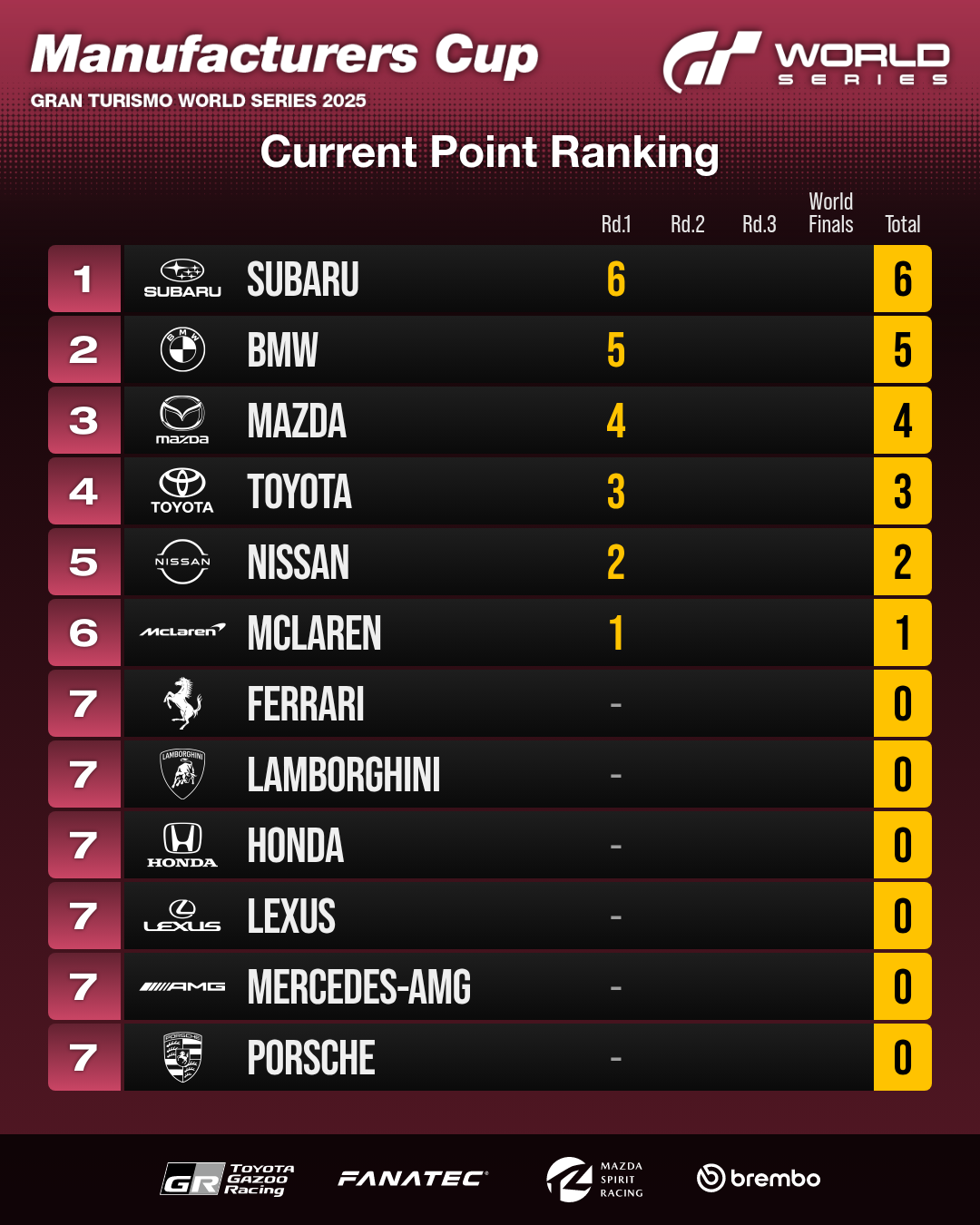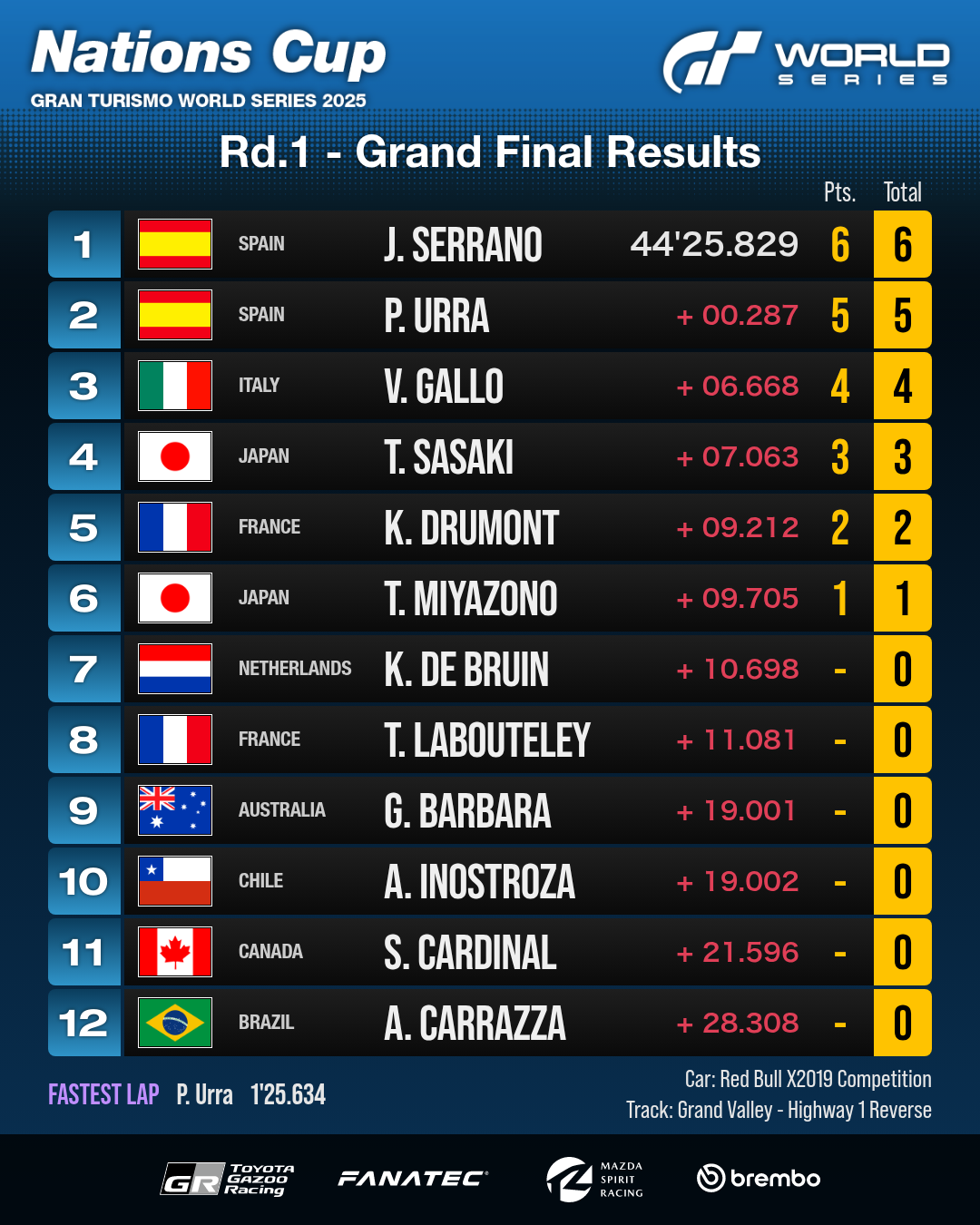Gran Turismo世界系列赛2025第1轮——伦敦比赛成绩