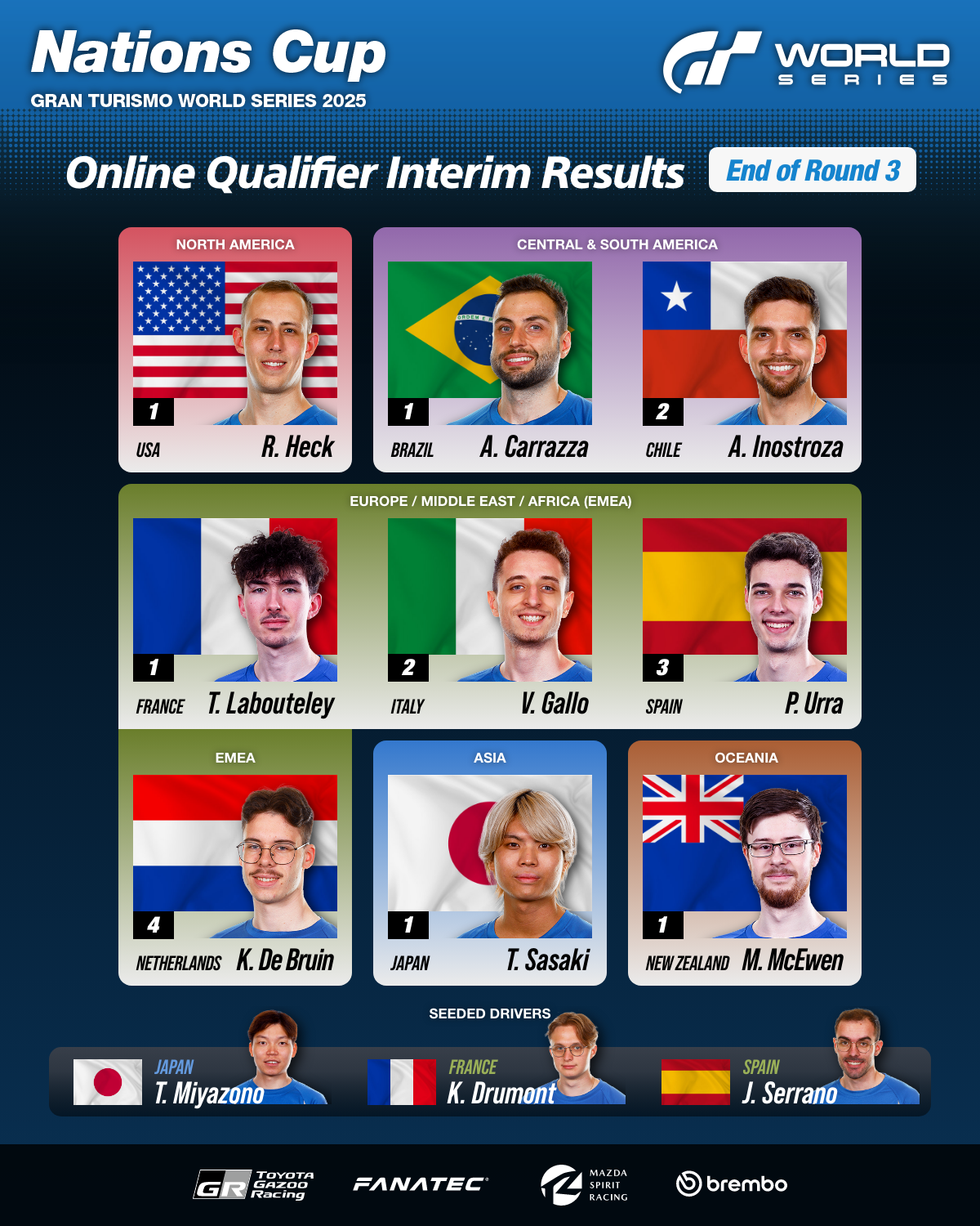 Gran Turismo世界系列赛2025在线预选赛——国家杯比赛结果(暂定)(第3轮结束)