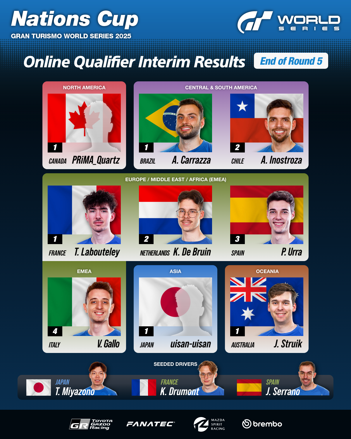 Gran Turismo世界系列赛2025在线预选赛——国家杯比赛结果(暂定)(第5轮结束)