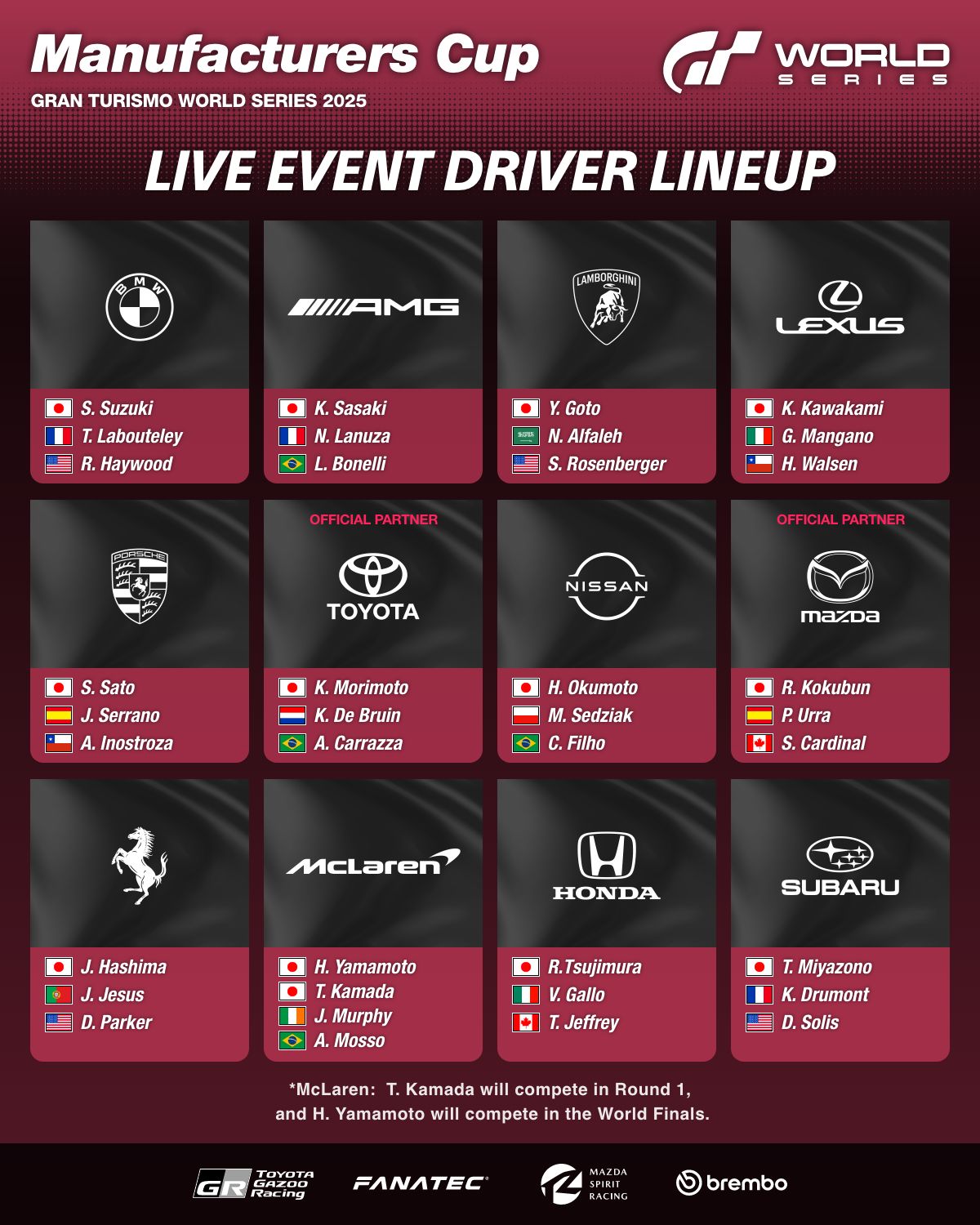 Gran Turismo世界系列赛2025现场赛事参赛名单