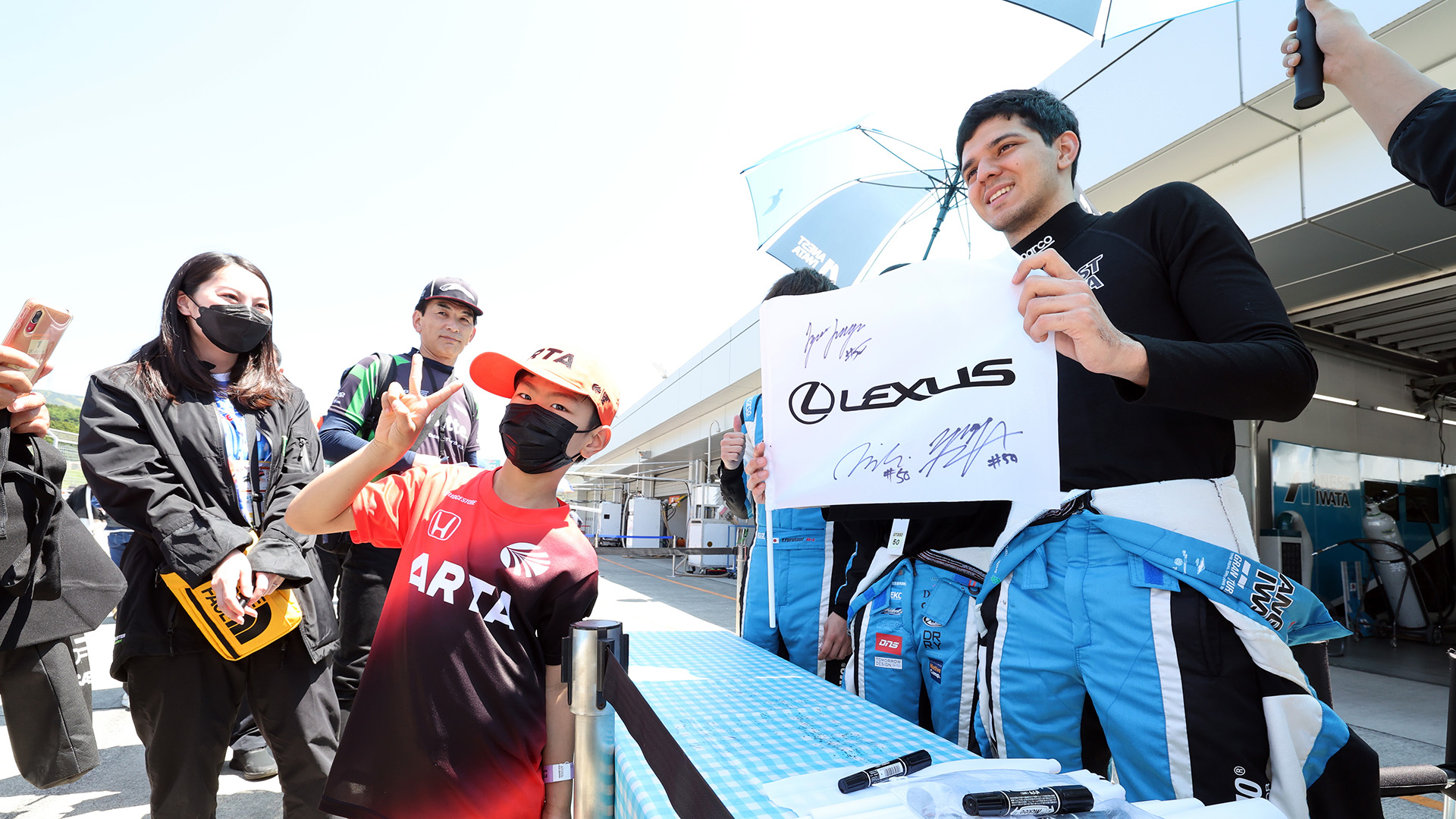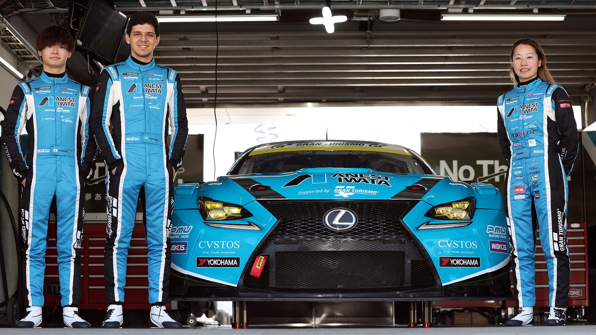 三名车手在练习赛的前一天便提前抵达了富士高速赛道,他们的第一项工作就是迎接ANEST IWATA Racing的车迷们。在公众观赛区的ANEST IWATA Racing来宾展台处,车队安排了一场《跑车浪漫旅 7》中的计时争夺赛。