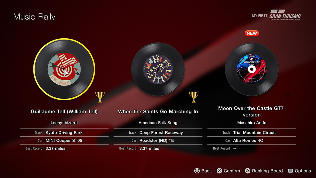 玩家可以在《跑车浪漫旅 7》中解锁已在《My First Gran Turismo》中获得的车辆,但需使用相同的PlayStation™Network账号游玩两款游戏。