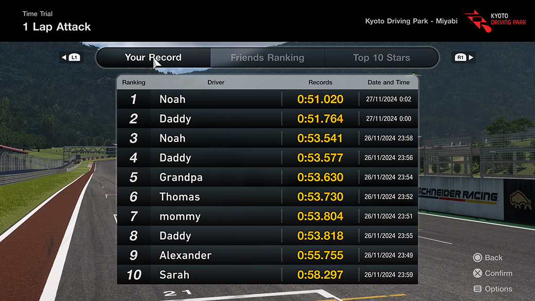在单圈计时赛中挑选爱车和赛道,将你的名字和最快圈速留在榜上。