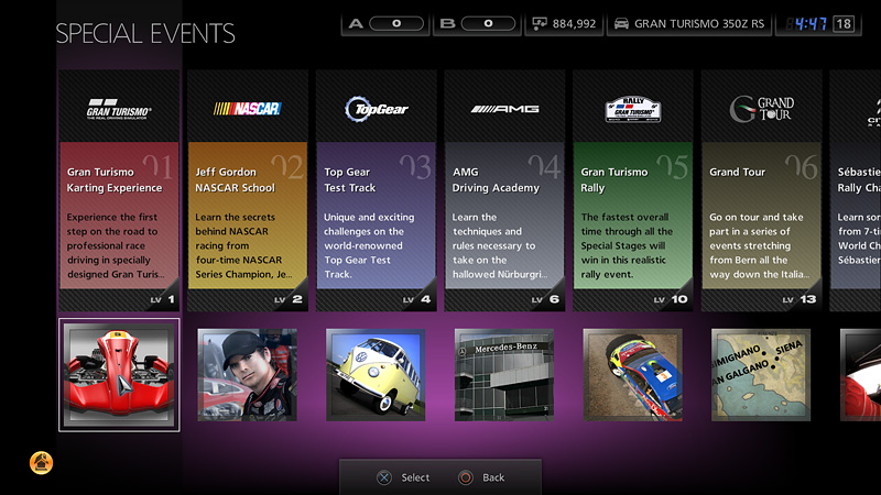 In addition to the A-Spec mode where the players themselves take hold of the steering wheel, the B-Spec mode allowed players to train drivers as a team director, opening whole new ways to play the game. Vehicles included cars such as the “Gran Turismo Red Bull X2010 S. Vettel” created through a collaboration with Red Bull, and Karts appeared for the first time in the series. And to the car list already exceeding 1000 models at the time of launch, more cars including 11 models of 2011 NASCAR stock cars were added to the game in updates after its release.