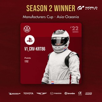 第二赛季战火重燃,年轻车手V1_CRV-KRT86势如破竹,为Volkswagen夺得桂冠!